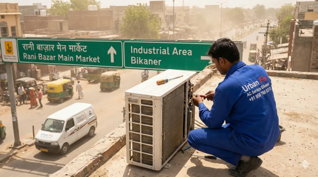 Justdial sirf numbers deta hai, lekin Urban Fix deta hai live support. Rani Bazar Industrial Area mein heavy dust ki wajah se AC coils jaldi gandi hoti hain. Hum use karte hain High-Pressure Jet Pumps aur Foam Wash jo coil ki deep cleaning karke cooling badhata hai.